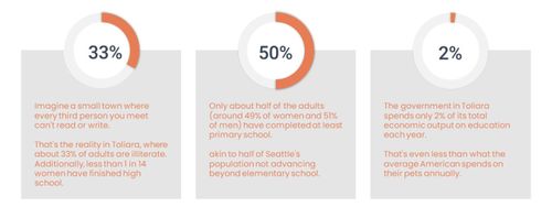 Literacy Rates: Imagine a small town where every third person you meet can't read or write. That's the reality in Toliara, where about 33% of adults are illiterate. The situation is even tougher for women; nearly 2 out of every 5 adult women in Toliara can't read or write.