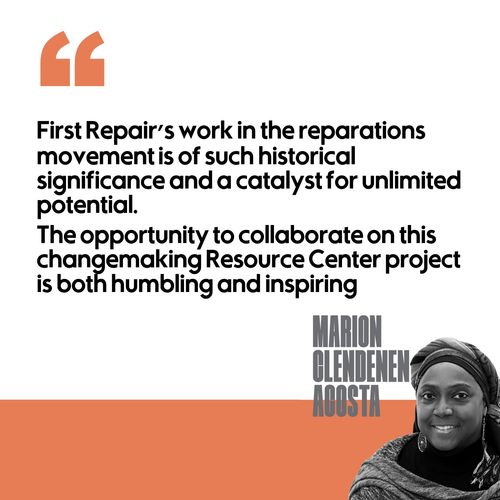"First Repair’s work in the reparations movement is of such historical significance and a catalyst for unlimited potential. The opportunity to collaborate on this changemaking Resource Center project is both humbling and inspiring" - says Marion.